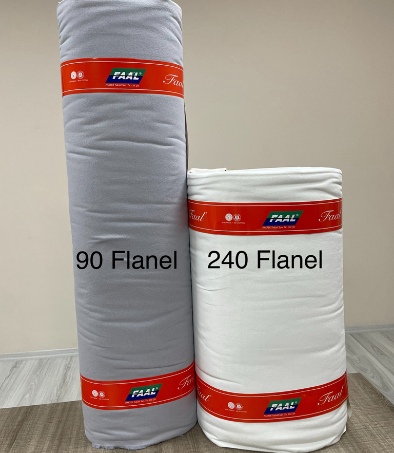 Flanel kataloğumuz, 90 cm en 190 Gsm ağırlık ve 240 cm en 170 Gsm ağırlık olmak üzere 2 çeşittir. %100 pamuktan üretilmiştir. Reaktif boya kullanılarak işlenen kumaşımız, uluslararası Oeko-Tex 100 ve ISO standartlarına uygun olarak boyanmıştır, çevre ve insan sağlığına zararlı maddeler içermez.