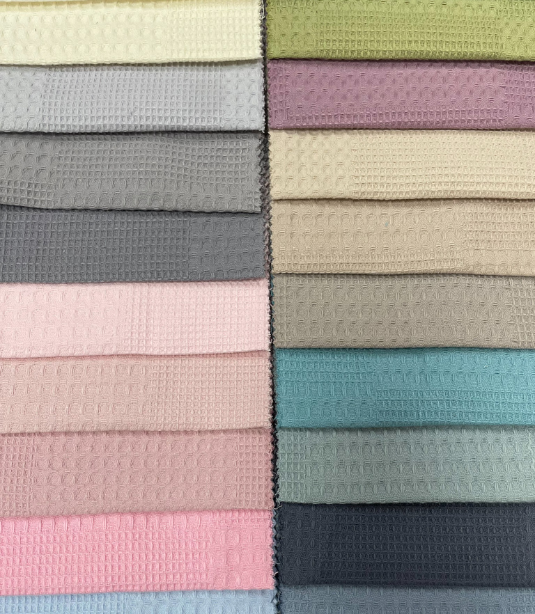Eni 240 cm olan Waffle Pike kumaşımız %100 pamuktan (Ring Cotton) üretilmiştir. Gramajı 240 Gsm’dir. Yüksek kaliteli pamuk malzemesi sayesinde dayanıklı ve uzun ömürlüdür. Reaktif boya kullanılarak işlenmiş olup, uluslararası Oeko-Tex 100 ve ISO standartlarına uygun olarak boyanmıştır. Çevre ve insan sağlığına zararlı maddeler içermez.
