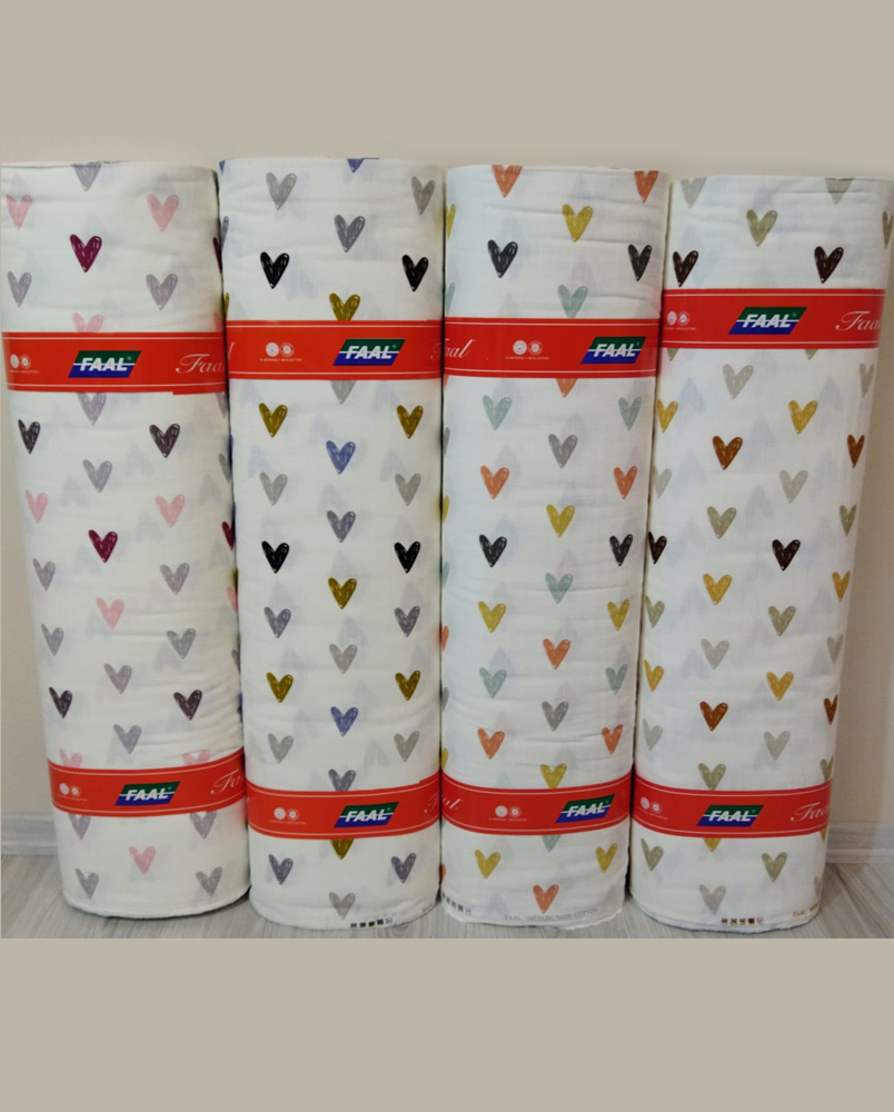 Eni 180 cm olan 2 Kat Kareli Müslin kumaşımız %100 pamuktan (Ring/Open - End Cotton) üretilmiştir, gramajı 140 Gsm’dir. Reaktif boya ve pigment baskı kullanılarak işlem görmüş, uluslararası Oeko-Tex 100 ve ISO standartlarına uygun olarak boyanmıştır. Çevre ve insan sağlığına zararlı maddeler içermez. 2 Kat Kareli Müslinlerimizde desenli ürünlerimiz de mevcuttur, bazı örnekleri aşağıda görebilirsiniz.